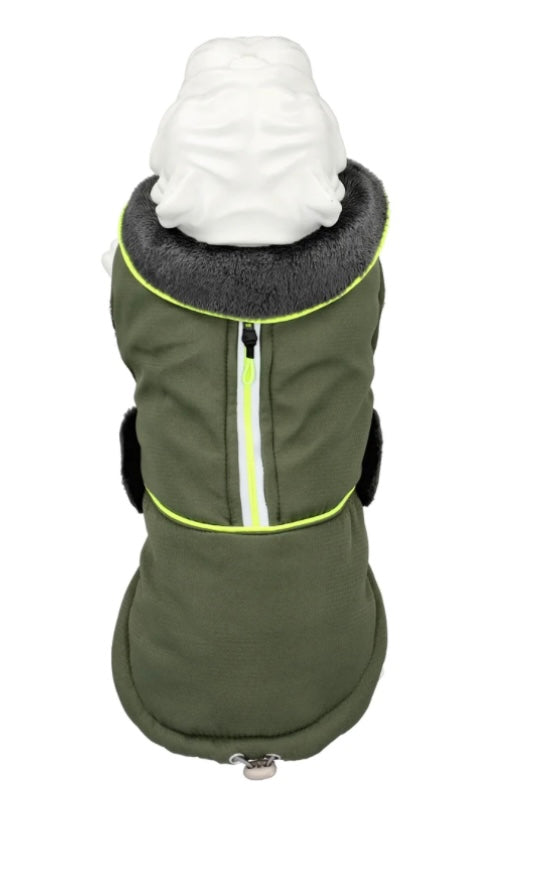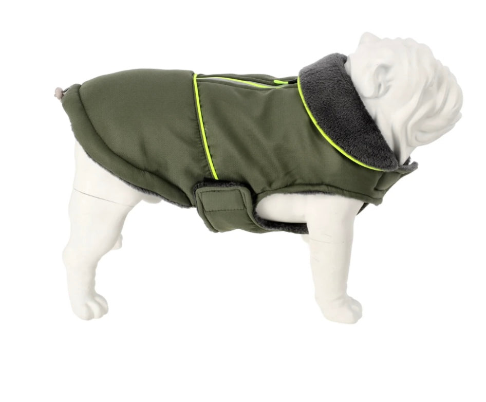 Il a un intérieur tout doux et bien chaud pour votre compagnon, sur la tirette il y a une bande réfléchissante et 2 bandes jaune fluo.