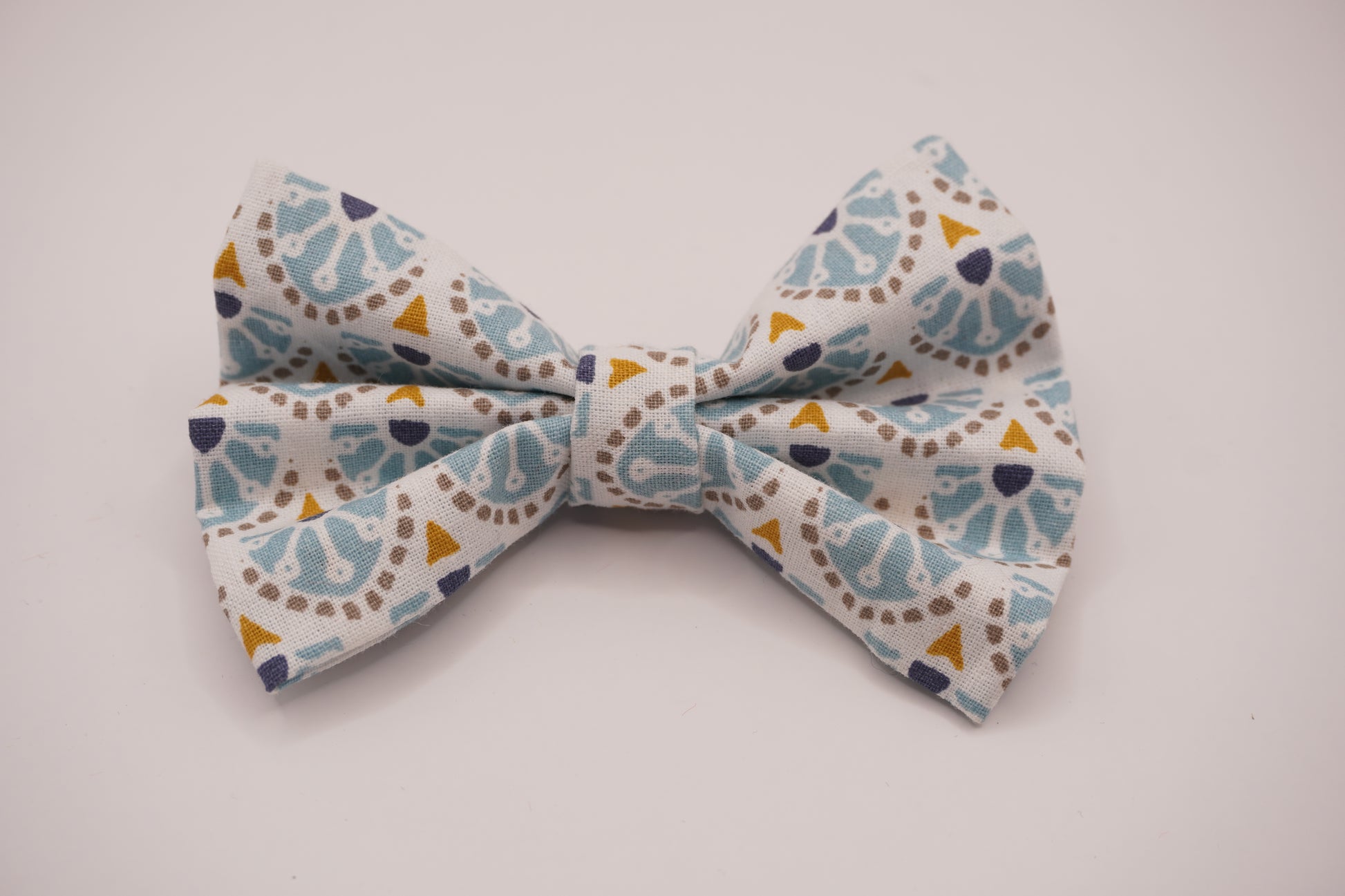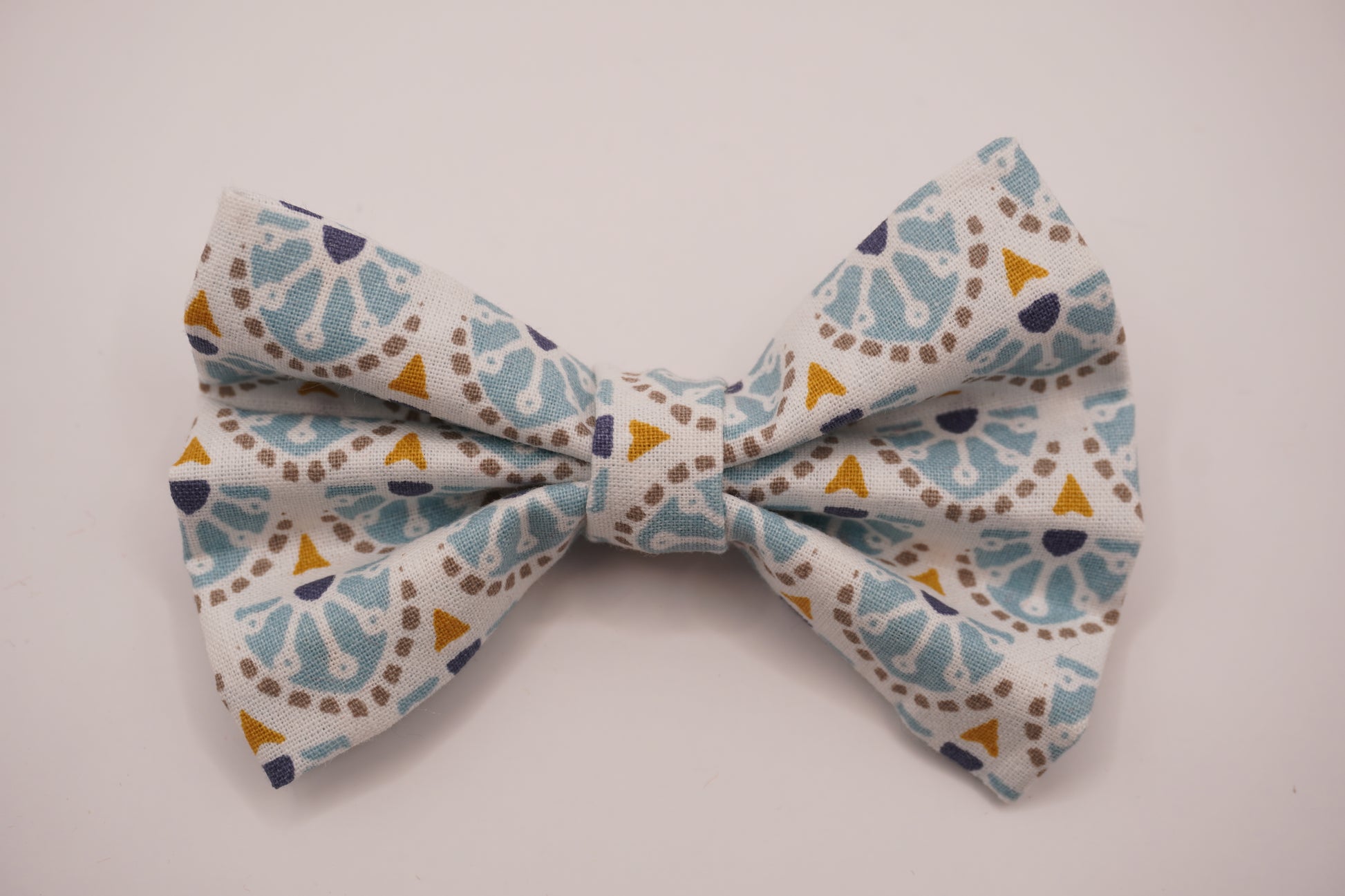 Les nœuds sont réalisés avec un joli tissus 100% coton ( tout doux pour votre chien, pas de risque d'irritation) et 2 élastiques à l'arrière du nœud pour pouvoir y passer votre collier.