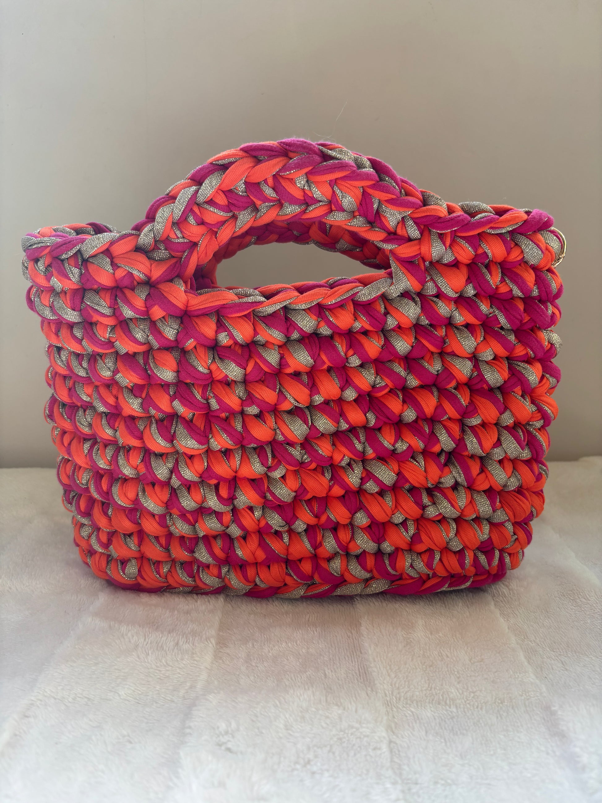 Ce sac Iris est composé d'un magnifique rose fuchsia , d'un orange et un gros fil doré bref le combo parfait