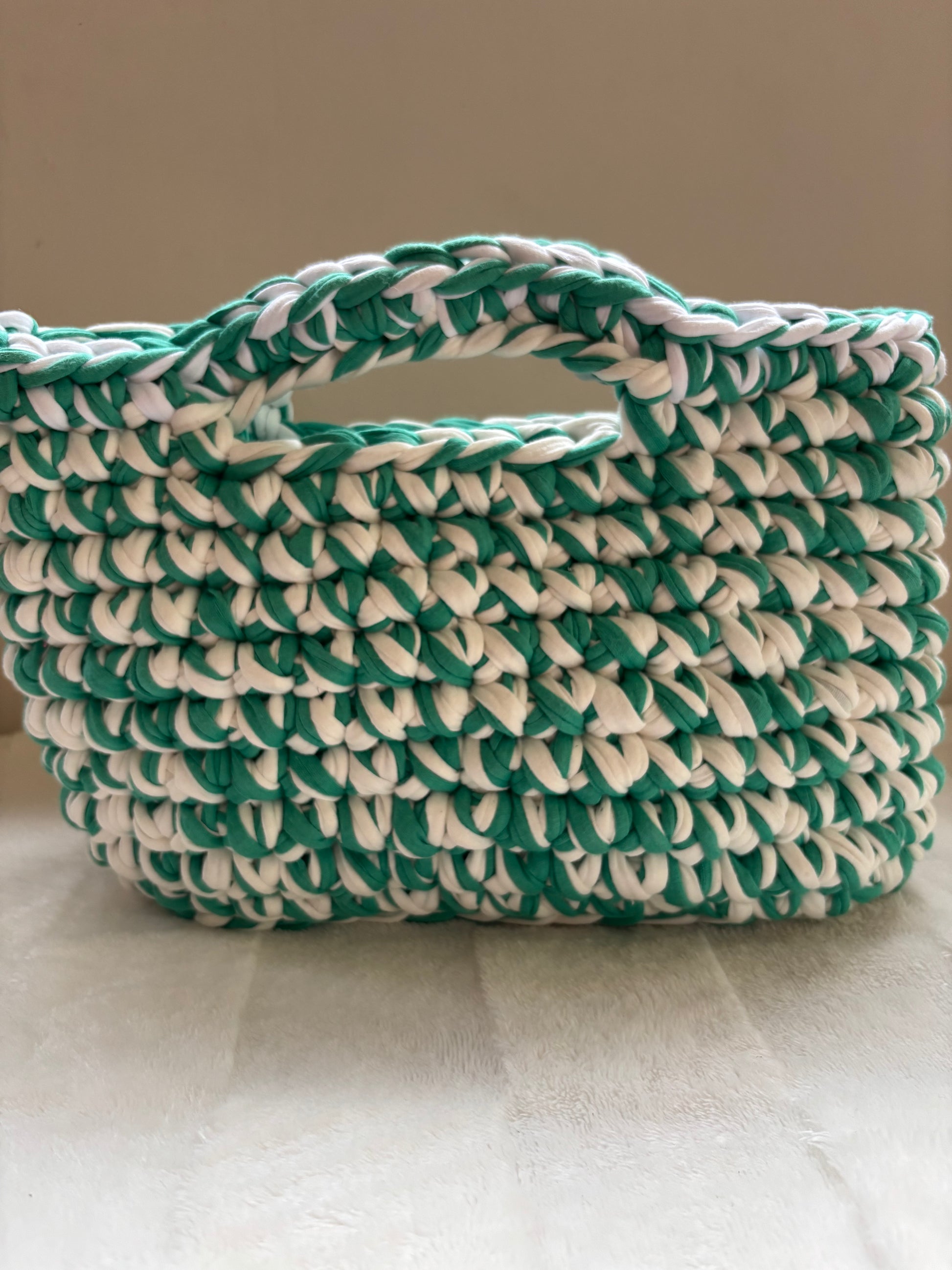 Ce sac Iris est composé d’un beau fil menthe et d'un blanc