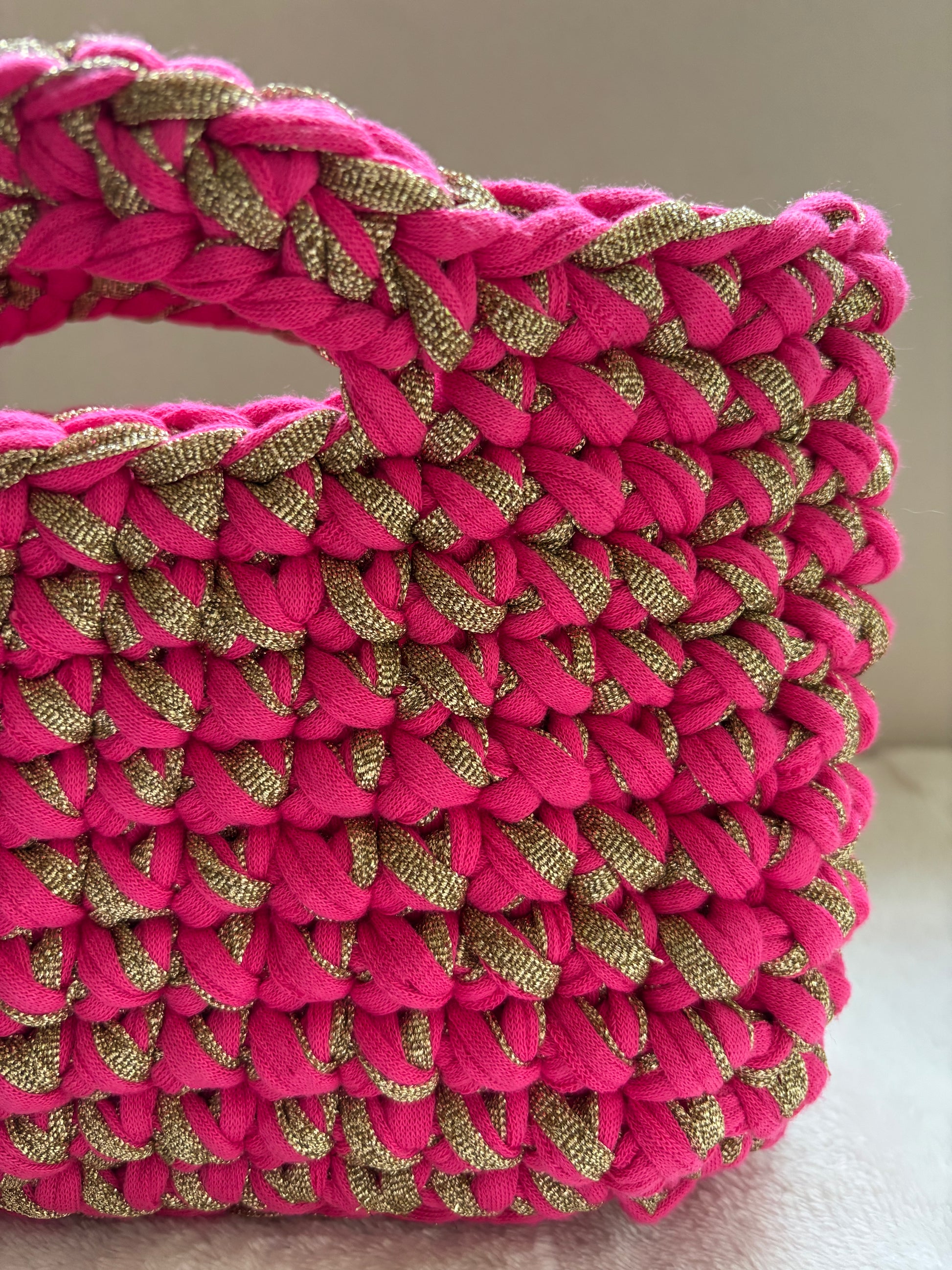 Ce sac Iris composé d’un beau fil rose et d’un gros fil doré
